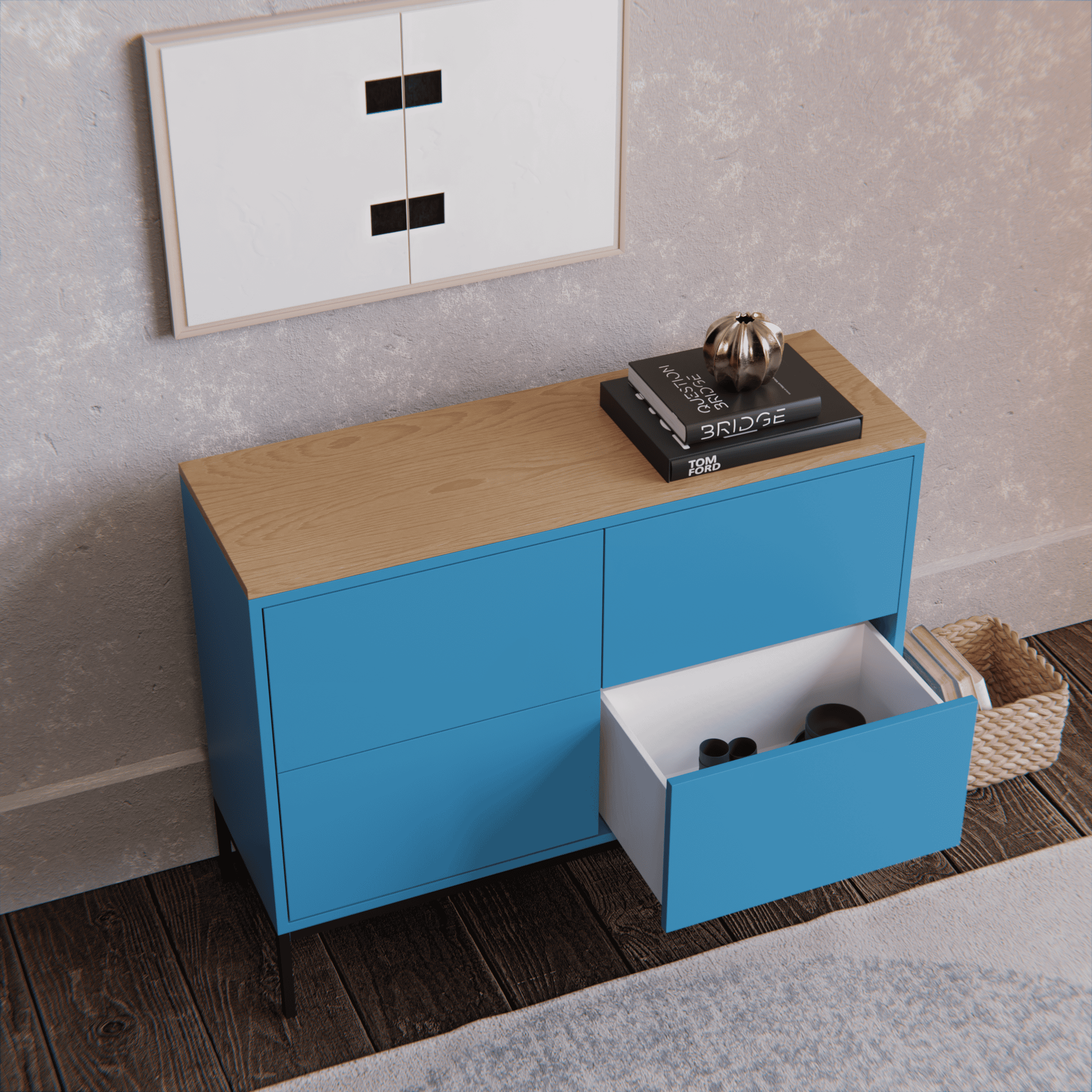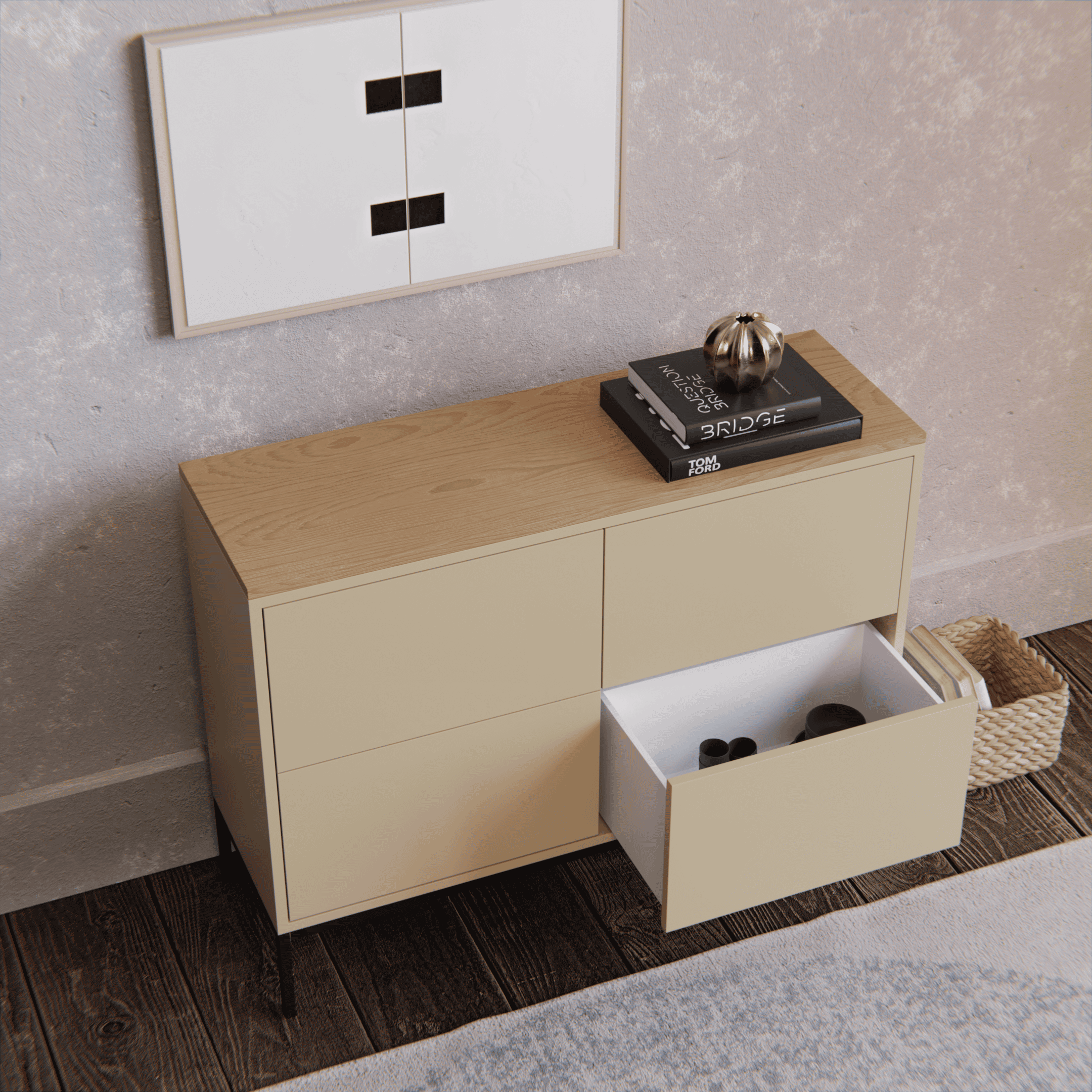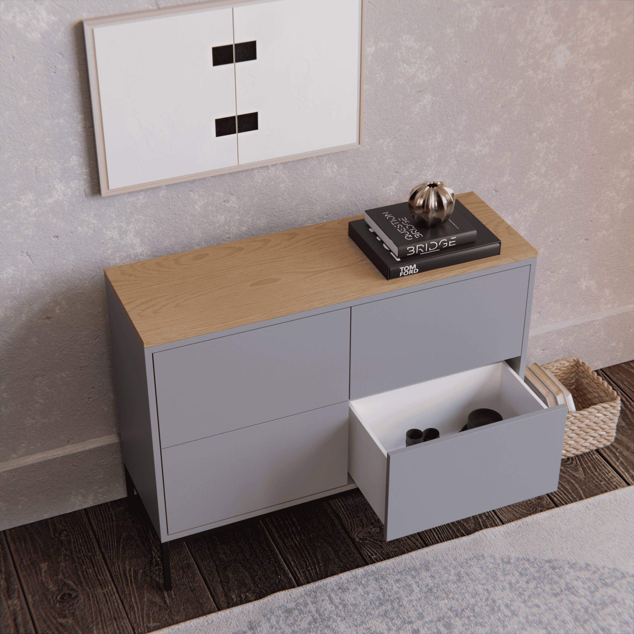 - 4 מגירות מרווחות לאחסון אופטימלי הנפתחות בטאצ׳