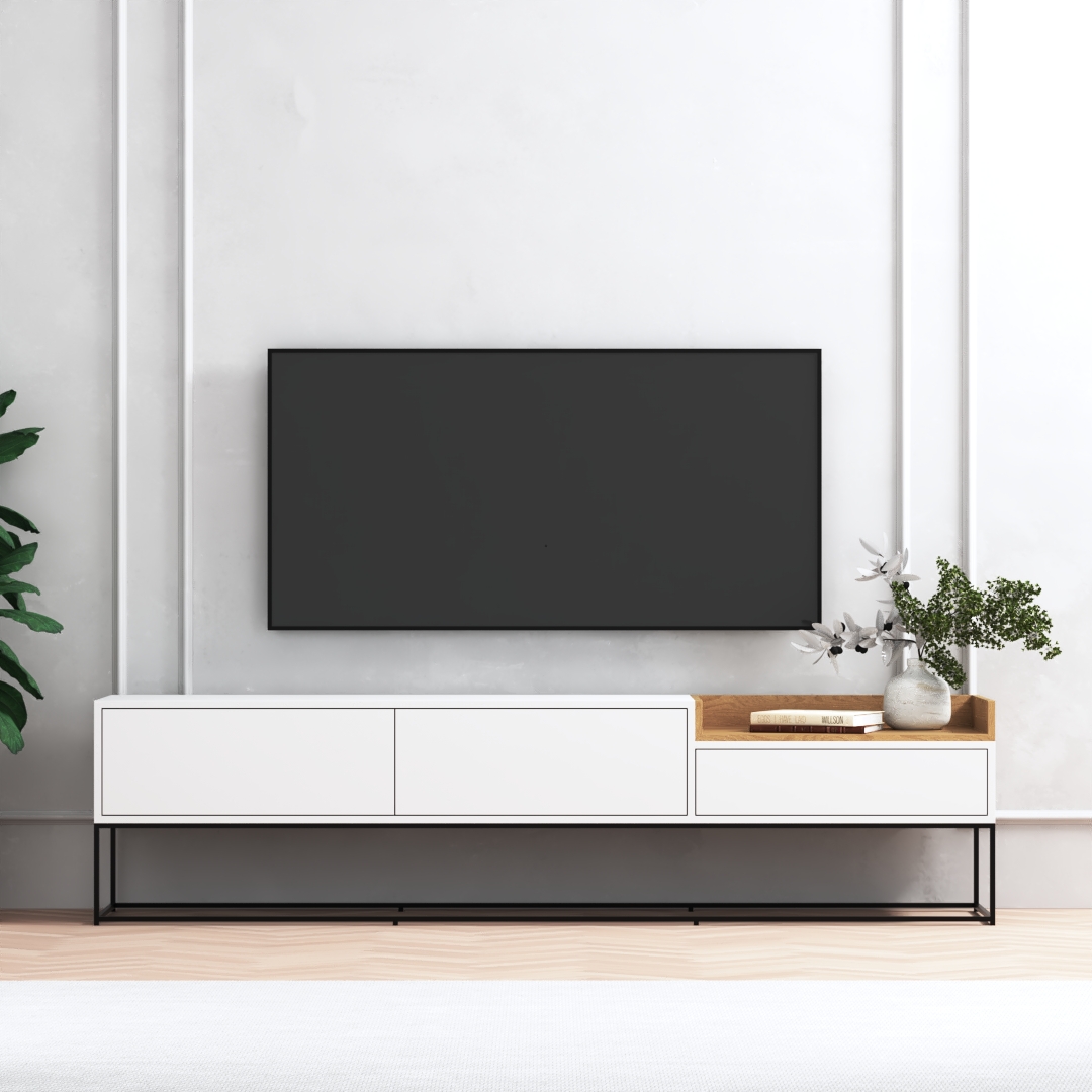 מזנון מודרני ומעוצב דגם “Argo” – הפתרון המושלם ליצירת מראה מסודר ומרהיב בסלון שלכם. מזנון טלויזיה המספק חלל איחסון רחב ומרווח. כולל שתי מגירות וקלפה לשמירה על מראה נקי ומסודר, ותא פתוח המתאים לאיחסון פריטים שונים. המזנון מצויד בפתחים מיוחדים להעברת כבלים המבטיחים נוחות וגישה קלה לכל החיבורים האלקטרוניים. קל לניקוי מבפנים ומבחוץ, המזנון משלב פונקציונליות עם עיצוב עכשווי ומודרני.