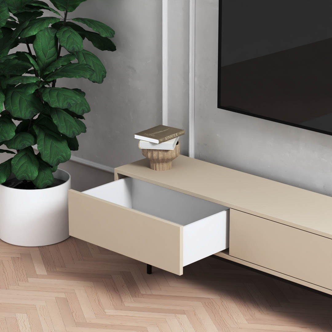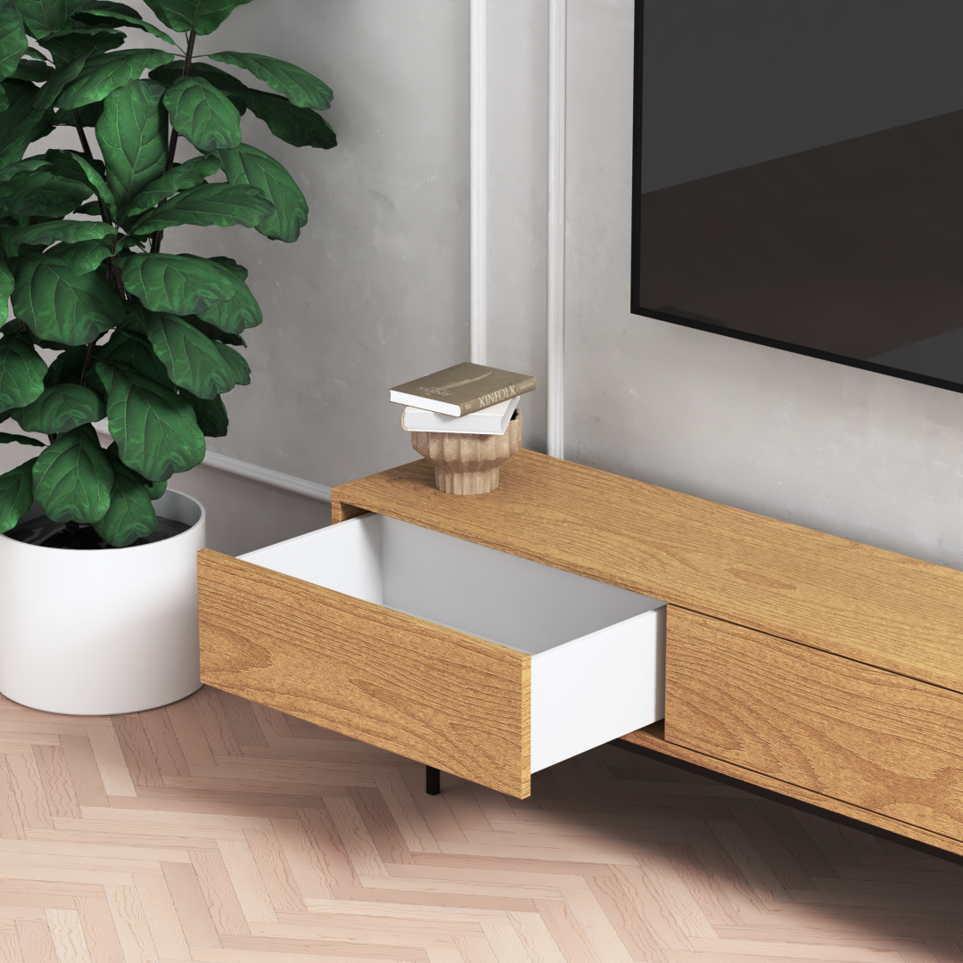 מזנון מודרני ומעוצב דגם “Bridge” – הפתרון המושלם ליצירת מראה מסודר ומרהיב בסלון שלכם. מזנון טלויזיה המספק חלל איחסון רחב ומרווח. כולל מגירה ו2 קלפות לשמירה על מראה נקי ומסודר, ותא פתוח המתאים לאיחסון פריטים שונים. המזנון מצויד בפתחים מיוחדים להעברת כבלים המבטיחים נוחות וגישה קלה לכל החיבורים האלקטרוניים. קל לניקוי מבפנים ומבחוץ, המזנון משלב פונקציונליות עם עיצוב עכשווי ומודרני.